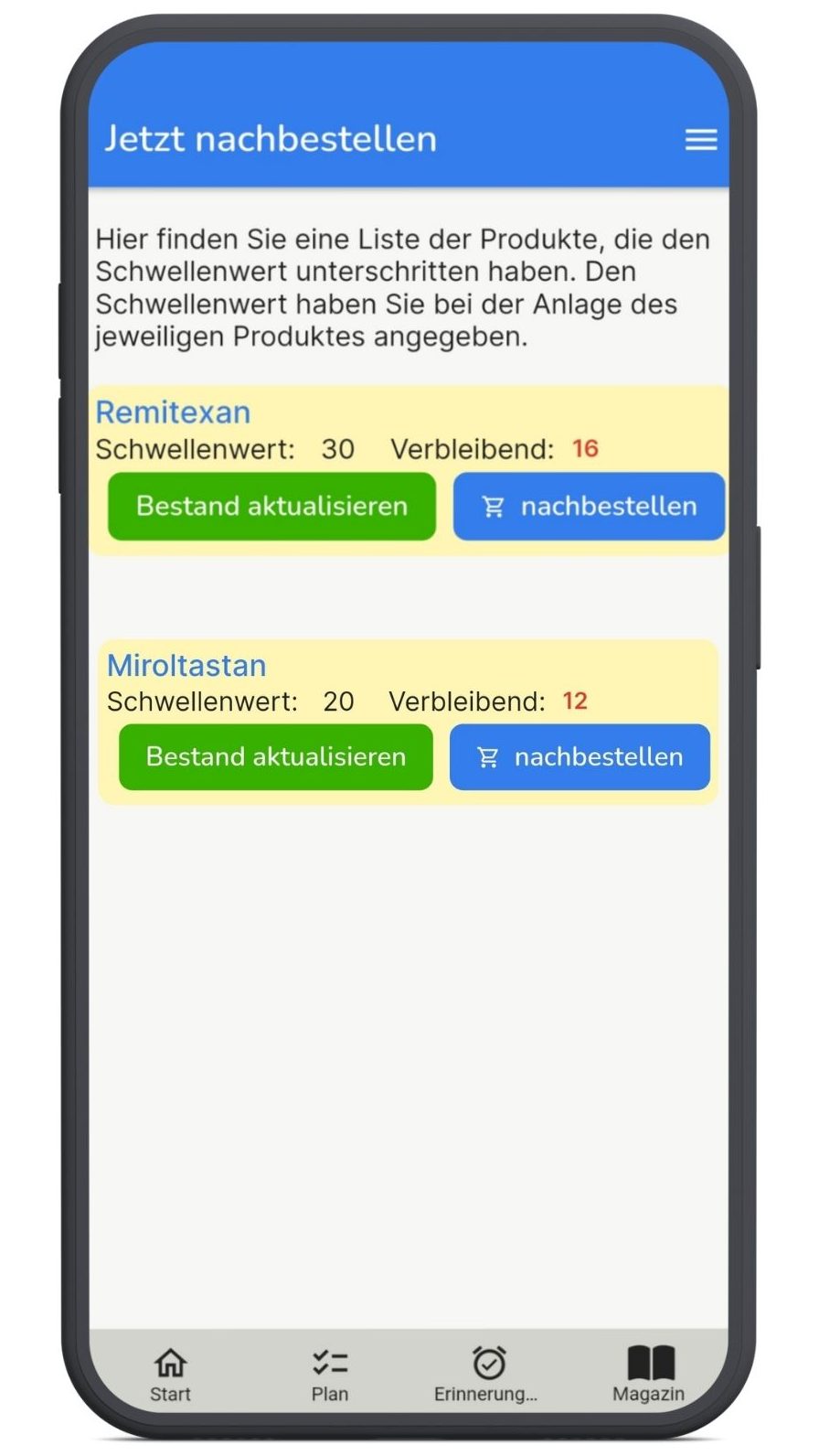 Sobald ein Schwellenwert unterschritten wurde, wird automatisch daran erinnert, Nachschub zu bestellen.